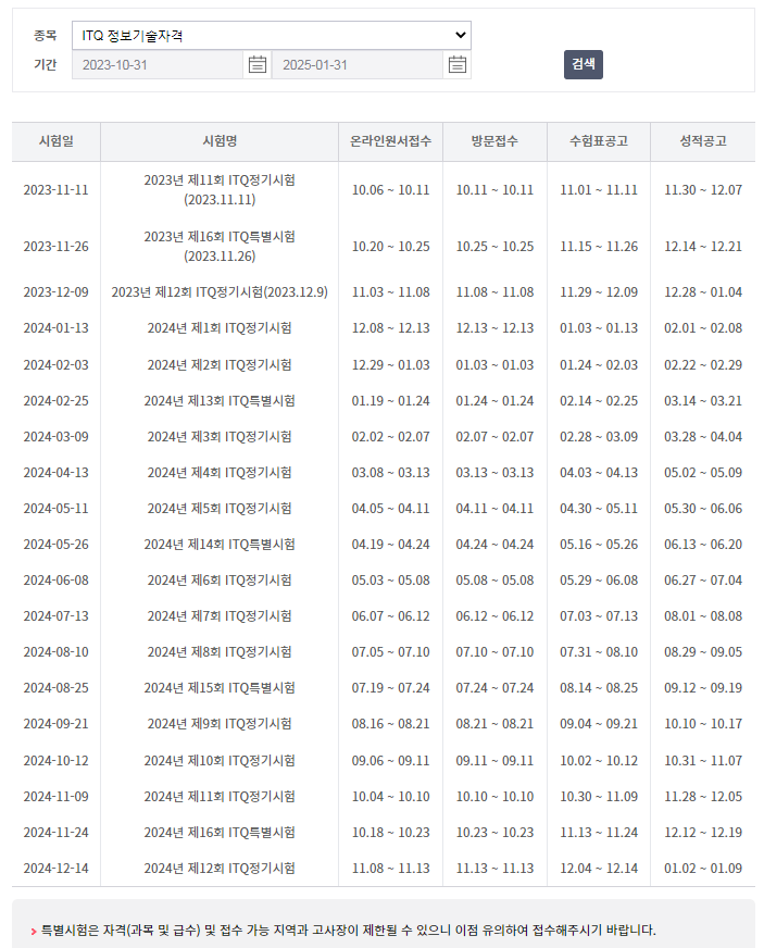 | 2024년 ITQ 정보기술자격 시험일정 | |||