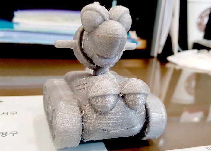 3D프린터로 막 출력이 끝나자 말자 훈련생이 기쁜 표정으로 가져 온 출력물입니다:D