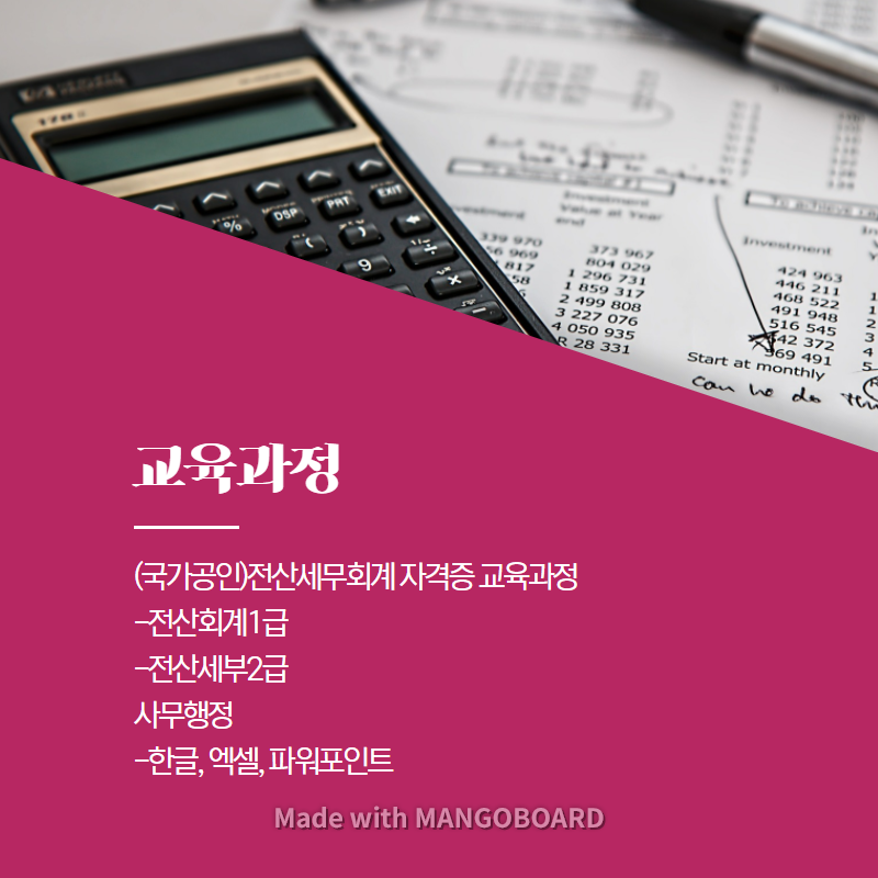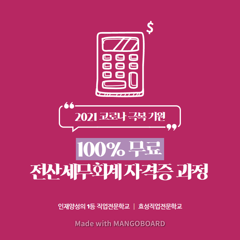 [무료교육]전산세무회계자격증과정 취업교육생 모집
