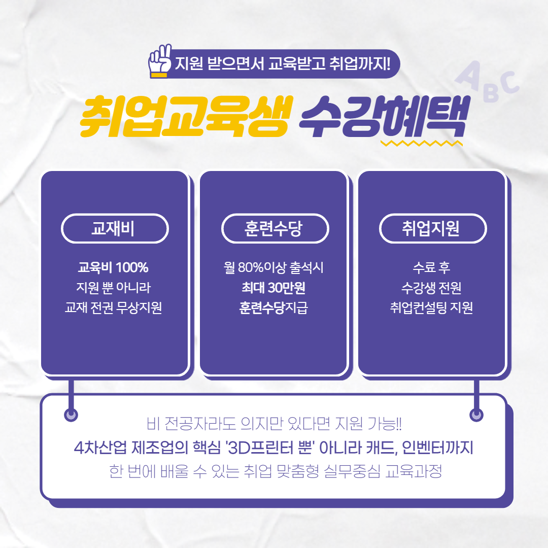 [무료교육]캐드·3D모델링·3D프린터 취업교육생 모집