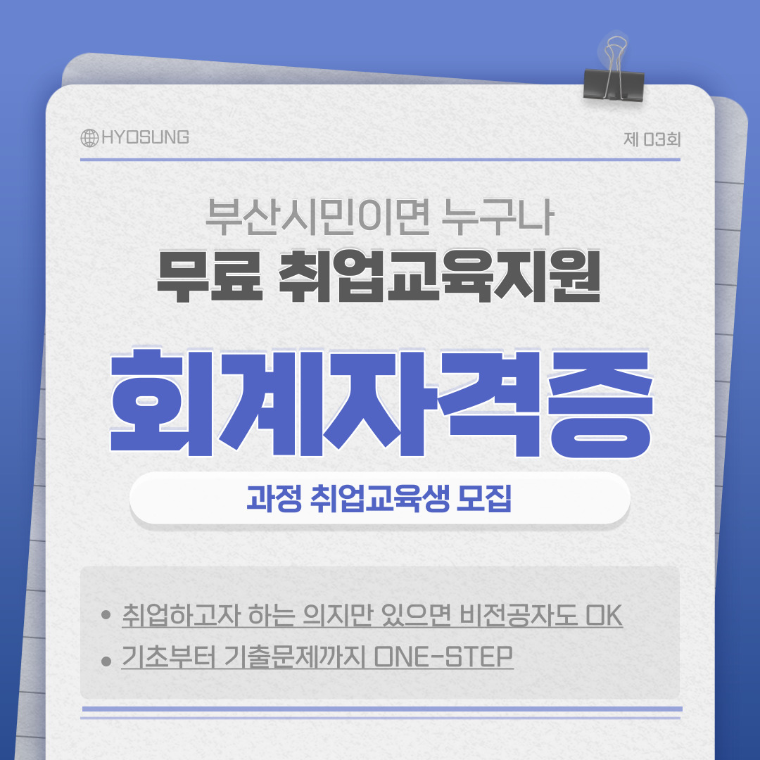 [부산시민최대100%무료]전산세무회계자격증 취업교육생 모집