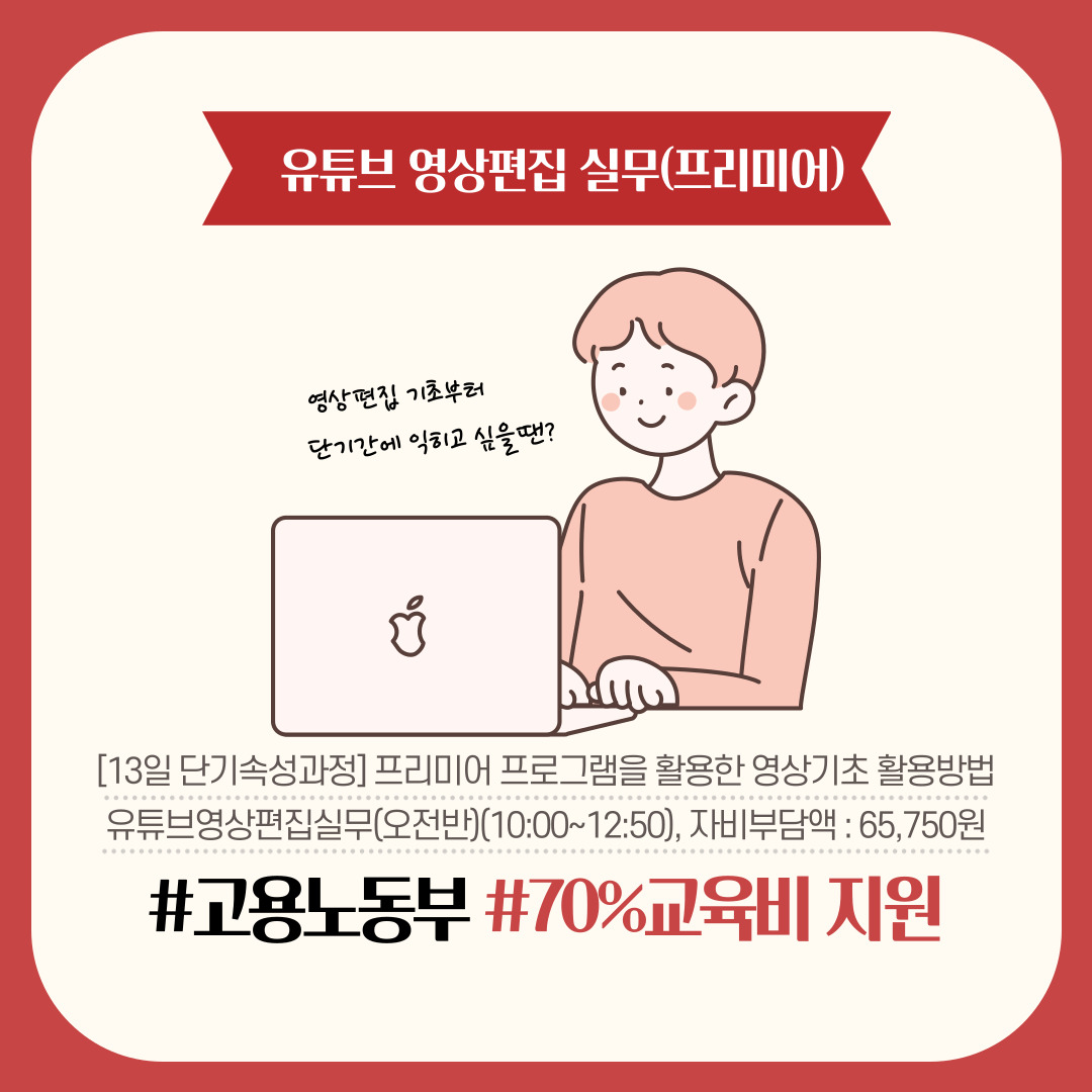 [단기속성과정] 유튜브 영상편집기초(프리미어프로) - 월,수,금/야간