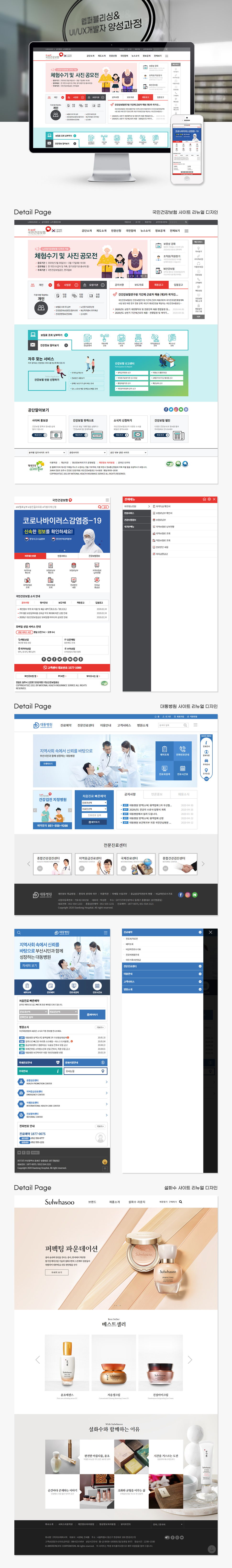 http://uuuuu28.dothome.co.kr/nhis/ (국민건강보험공단 리뉴얼 디자인 - 메인 페이지) http://uuuuu28.dothome.co.kr/nhis/mobile/ (국민건강보험공단 모바일 리뉴얼 디자인 - 메인 페이지) http://uuuuu28.dothome.co.kr/deadong/ (대동병원 리뉴얼 디자인 - 메인 페이지 및 서브 페이지 일부) http://uuuuu28.dothome.co.kr/deadong/mobile/ (대동병원 모바일 리뉴얼 디자인 - 메인 페이지 및 서브 페이지 일부) http://uuuuu28.dothome.co.kr/sulwhasoo/ (설화수 리뉴얼 디자인 - 메인 페이지 및 서브 페이지 일부)