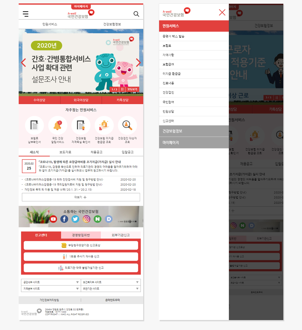 http://hhj171258.dothome.co.kr/nhis/ (국민건강보험공단 리뉴얼 디자인 - 메인 페이지)http://hhj171258.dothome.co.kr/m_nhis/ (국민건강보험공단 모바일 리뉴얼 디자인 - 메인 페이지)http://hhj171258.dothome.co.kr/knco/ (경농 리뉴얼 디자인 - 메인 페이지 및 서브 페이지 일부)