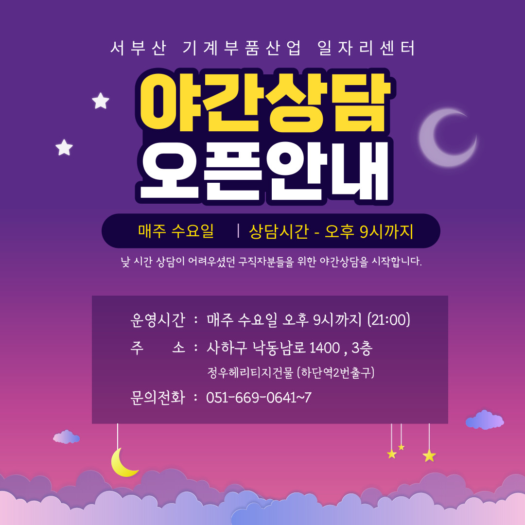 | <서부산 기계부품산업 일자리센터 「야간상담」 오픈안내> | |||