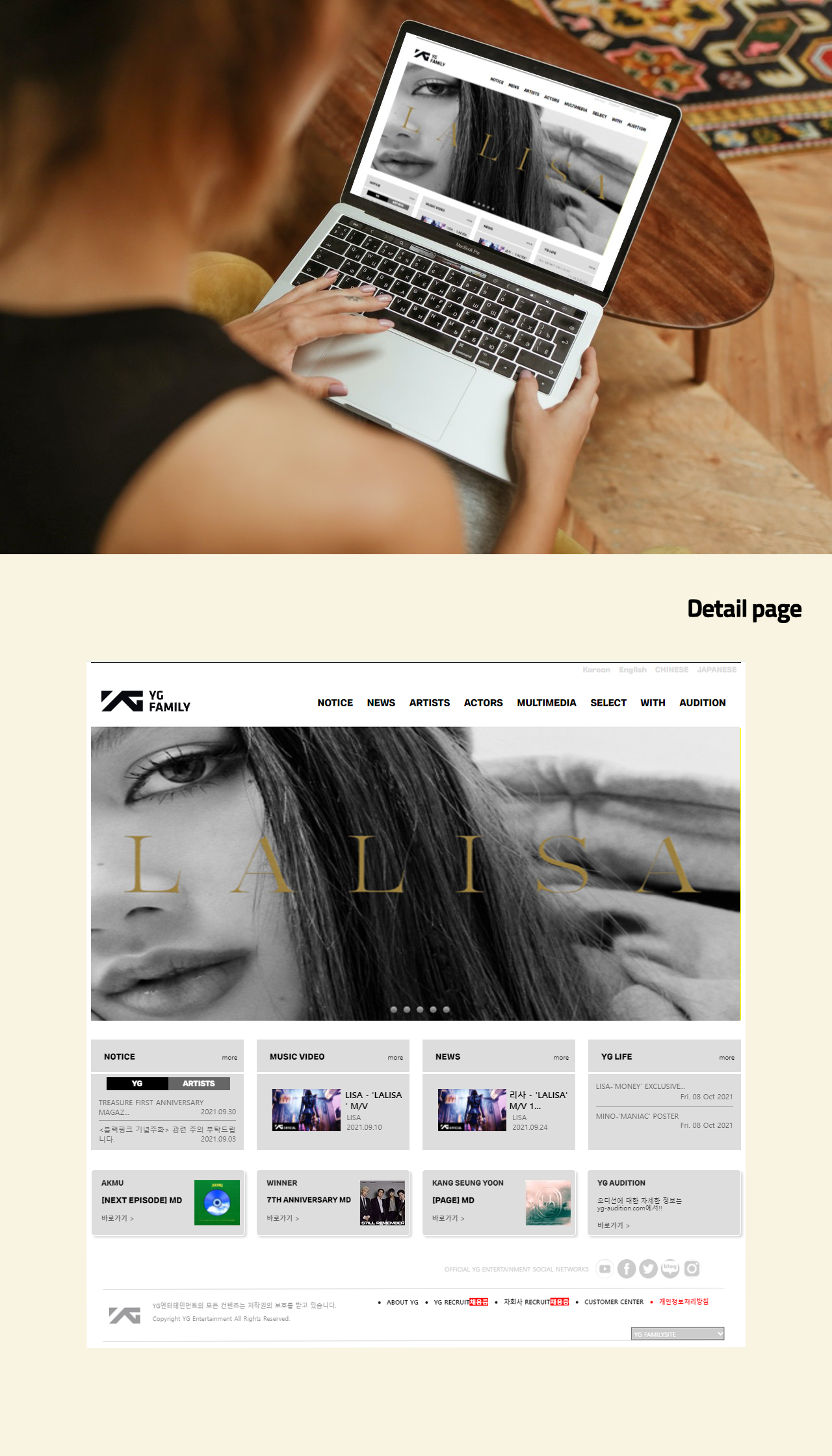 웹리뉴얼디자인│YG엔터테인먼트