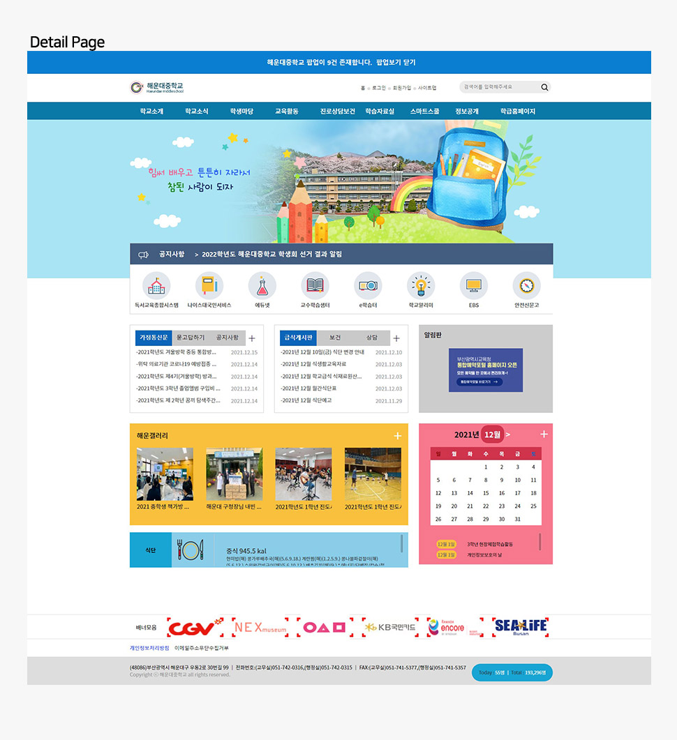 웹리뉴얼디자인│해운대중학교