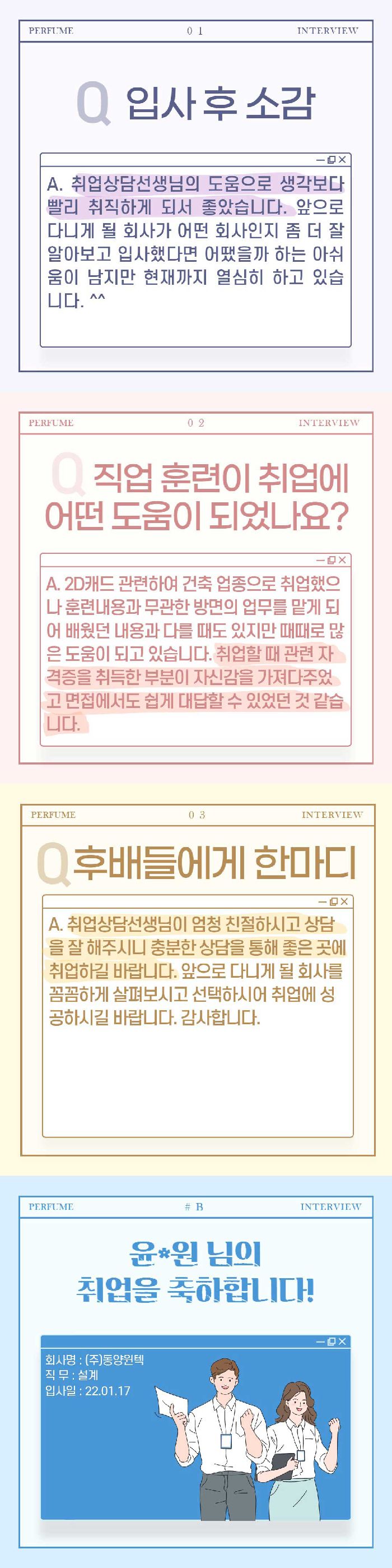 취업상담선생님의 도움으로 빨리 취직하게 되어 좋았습니다!