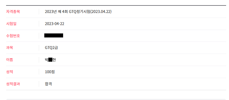 < 2023년 제 4회 GTQ정기시험(2023.04.22) > ⭐100점⭐으로 합격~!